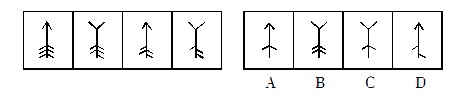 层次思维:定位此题,为细节变化问题,故思维圈定为前后图对比寻找细节差异。第一图与第二图比较可发现,箭头方向发生变化、左边的小线段从最下面减少一条,对比第二图与第三图,箭头方向又发生变化、右边的小线段从最上面减少一条,即可推得可能性规律,以第三、四幅图进行验证,符合,对照选项,可得题解为D。